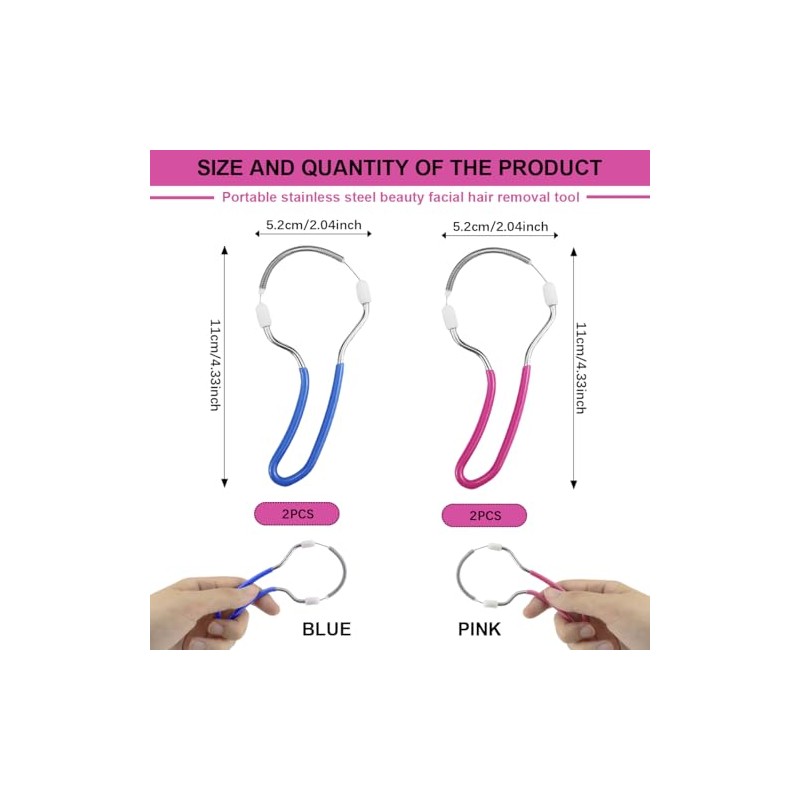 - HAIR REMOVAL TOOL KIT: Package includes 4 pieces of spring loaded facial hair removal tools for multiple facial areas including upper lip, chin, cheeks and neck. It allows you to easily remove annoying hairs at home and save time.