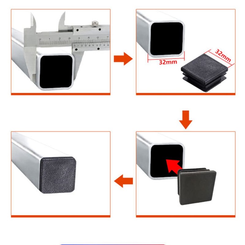- ▣【Wide Usage】Suitable for square metal table, chair & furniture legs, and any other hollow square box section tubing,such as metal fabrications, chairs, sofas, tables, shelving units, cabinets, handrails,fence,gate rail post covers, trailer frame ends.