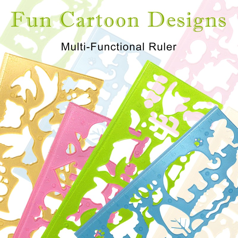 - Material: Made from sturdy plastic with smooth edges, these rulers are designed for long-term use. Each piece doubles as plastic stencils, providing accuracy in drawing shapes, animals, and creative designs