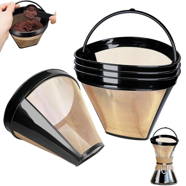 4PCS Tapered Filtro para Cafetera, Reutilizable Filtros para Cafetera de Goteo, Filtro de Café Universal Apto para Muchas Máquinas de Café,Café Preparado a Mano (4)
