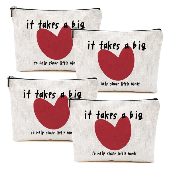 4PCs Teacher Makeup Bag, Teacher Appreciation Gifts, Teachers Gifts Thank You Gifts, It Takes a Big Heart to Shape Little Minds Cosmetic Bag, Teachers Birthday Graduation Gifts for Women Coworker