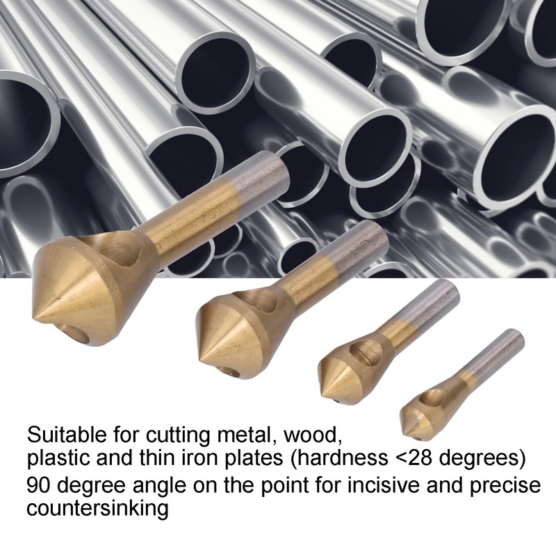 4PCS Titanium Coated Countersink Drill Bits 90 Degree Chamfer Tool High Speed Steel Chamfer Mill