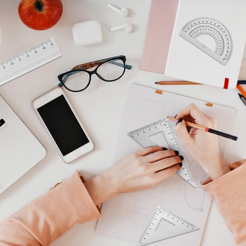 • "【Package Included】You will receive two triangle rulers, a protractor and a 5.9-inch ruler. A box is provided for your storage. This set can meet all your daily mathematical measurements.