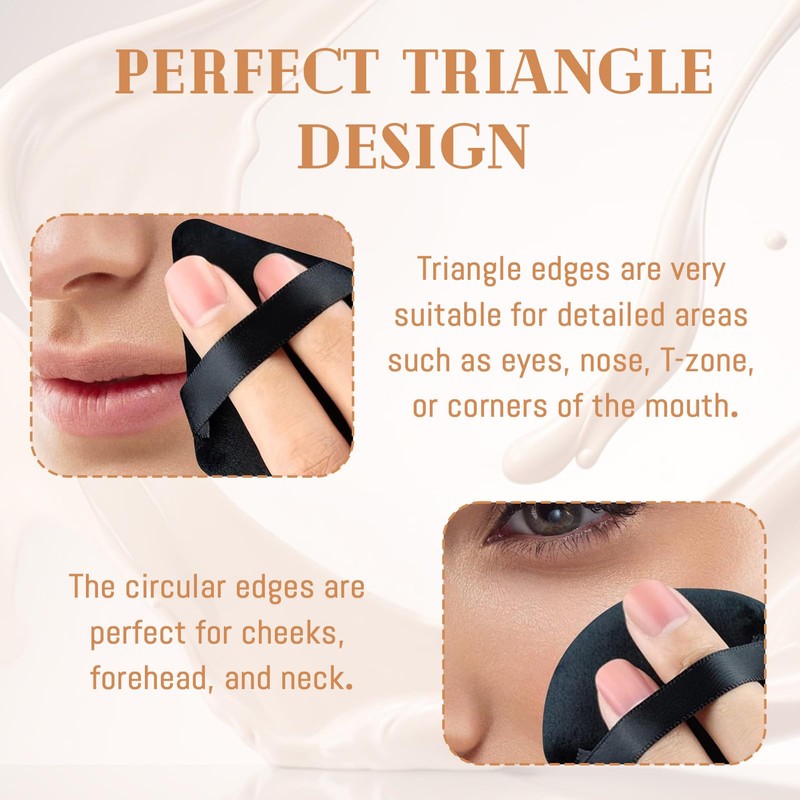- Soft and Smooth: This triangular puff is made of velvet and soft sponge, which feels comfortable to the touch and won't make your delicate skin uncomfortable, providing a smooth application effect for perfect makeup.