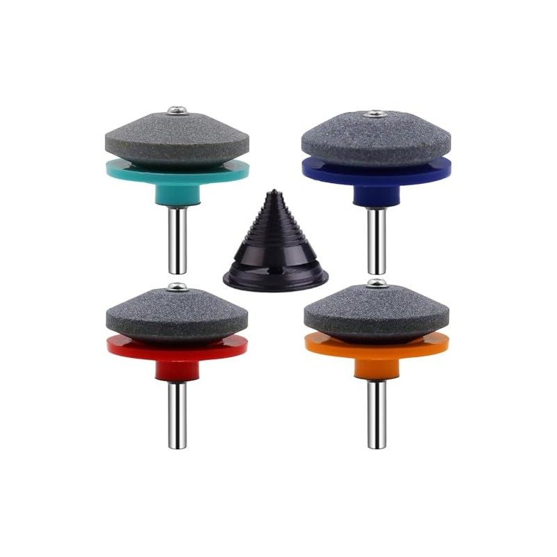4Pcs Universal Lawnmower Blade Sharpener Kit with Diamond Rotary Stones & Balancer,Multi-Angle Sharpening System for Power/Hand Drills & Riding Mowers