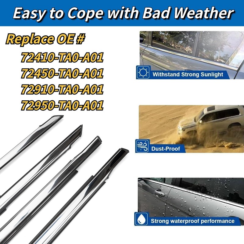 4Pcs Weatherstrip Window Moulding Trim Seal Belt Compatible with 2008-2012 Honda Accord Replaces#72410-TA0-A01 72450-TA0-A01 72910-TA0-A01 72950-TA0-A01