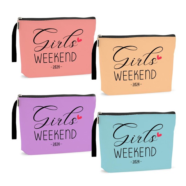 4Pcs Weekend Bag Girls Trip Gifts Favors Makeup Bag Girls Weekend Gifts Friendship Gifts Weekender Bags for Women Girls BFF Bestie Cosmetic Bag Zipper Pouch Wedding birthday Bachelorette Party