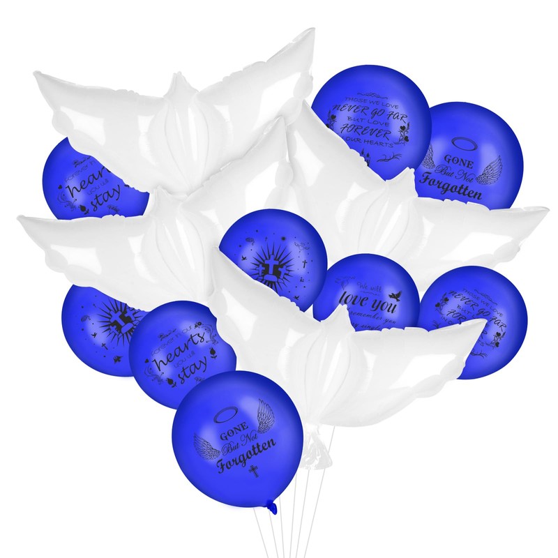 - 𝐌𝐞𝐦𝐨𝐫𝐢𝐚𝐥 𝐁𝐚𝐥𝐥𝐨𝐨𝐧𝐬 𝐭𝐨 𝐑𝐞𝐥𝐞𝐚𝐬𝐞 𝐢𝐧 𝐒𝐤𝐲 -- The dove is the messenger of peace, and there are warm texts printed on blue memorial balloons. Perfect for funeral decorations supplies for a memorial service, dove lanterns to release in sky memorial, death dying and bereavement, happy birthday in heaven remembrance event, ash scattering ceremony, graveside service ideas