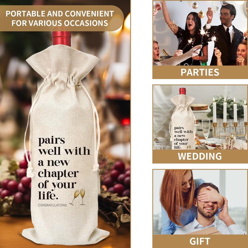 4PCS Wine Gift Bag, "New Chapter of Your Life", Reusable Wine Bag, for Colleague, Coworker, Friends, New Job, New House, Engagement Gift Wine Gift Bag