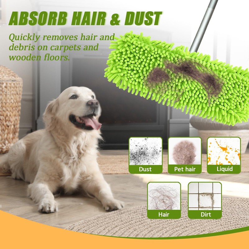 - High cleaning power: Our xl reusable mop pads are made of microfiber chenille cloth. When used dry, the fiber material can effectively absorb dust, animal hair, debris, etc.; when used wet, with detergent, it can effectively remove stains, oil stains, water stains and floor gaps, etc., to achieve deep cleaning
