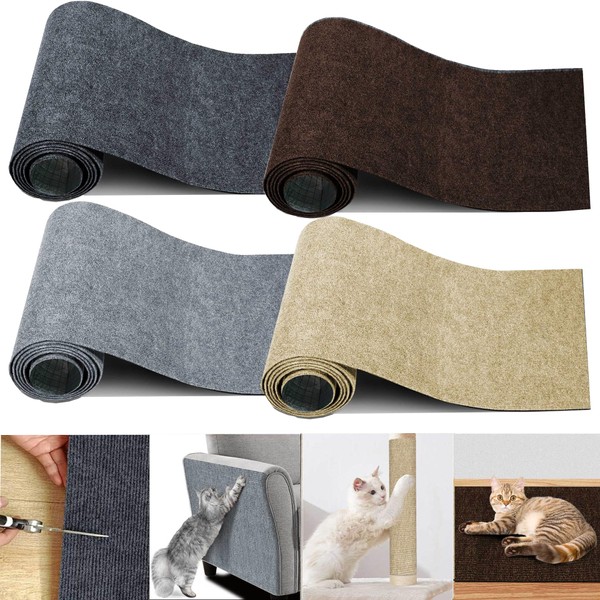 4Roll 158" x 15.8"Self-Adhesive Cat Wall Scratcher Climbing Pads,Cats Carpet Scratch Furniture Protector, Bed Couch Corner Guards from Claws,Trimmable Cat Sofa Scratcher Mat.