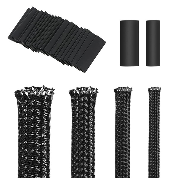 4roll 5m/roll Black PET Expandable Braided Cable Wire Sleeving Cable Wrap Snake Cord Protector, with 20pcs Heat Shrink Tube(8/10mm), for Audio Video Home Device Cable Automotive Wire(6/8/12/16mm)