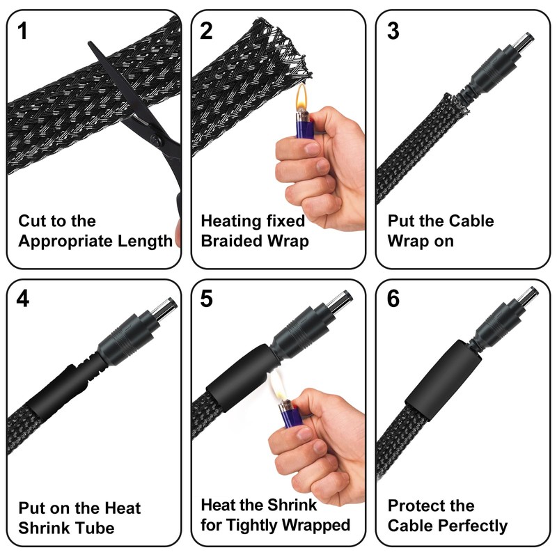 - 4, [Package Information]: 4 roll 5m expandable braided cable sleeve (Diameter: 6/8/12/16mm), 10pcs 8mm heat shrink tube, 10pcs 10mm heat shrink tube.