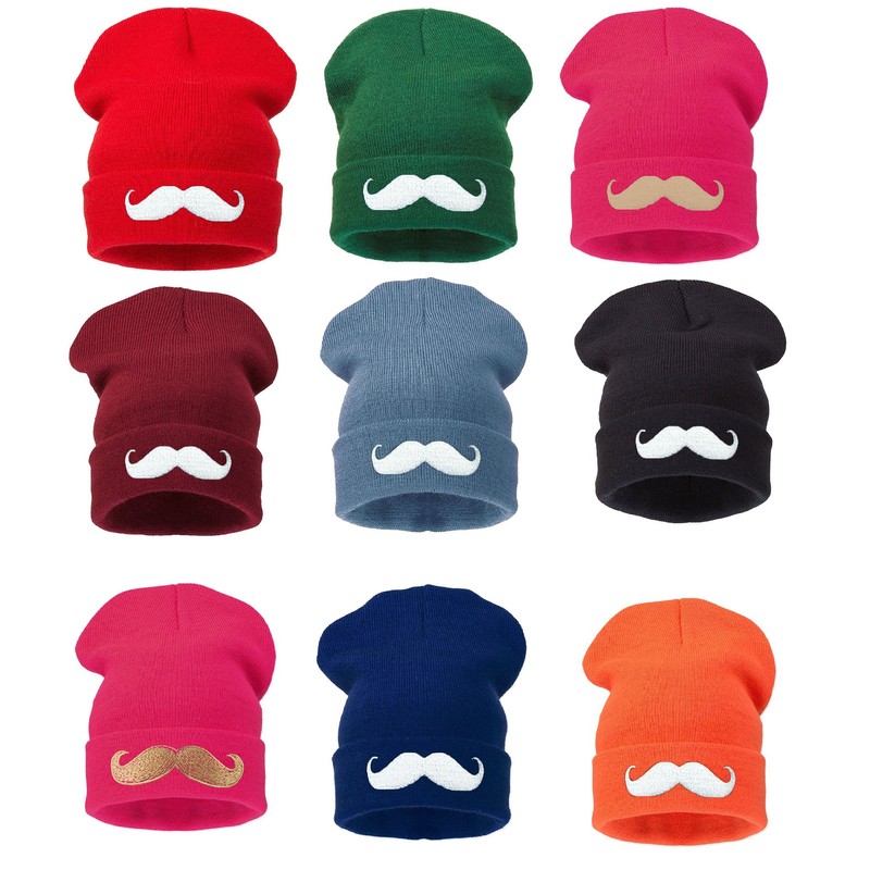 4sold hats beanie Slouch 6 models with logo mustashe - Black