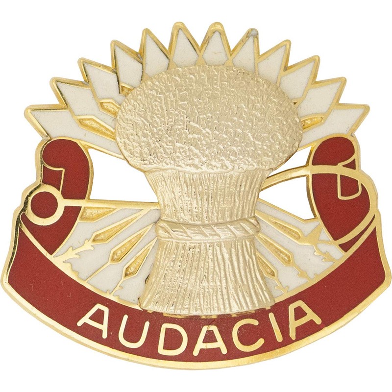 DUI-0004A(2), 4 ADA (AUDACIA) D-5045 UNIT CREST Our Unit Crest are Made in the USA to Government Specification. The Hallmark with the Institute of Heraldry is S-38. New - In Original Package