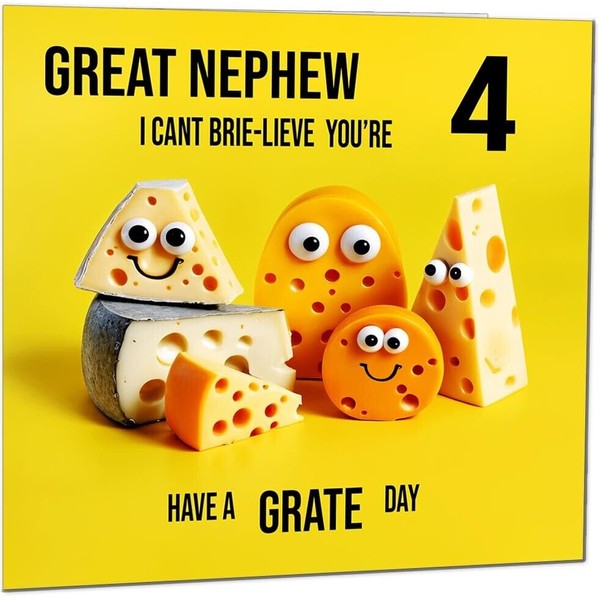 4th Great Nephew Birthday Card - Cheese Pun Funny Great Nephews Birthday Card for 4 Year old Kids four, fourth