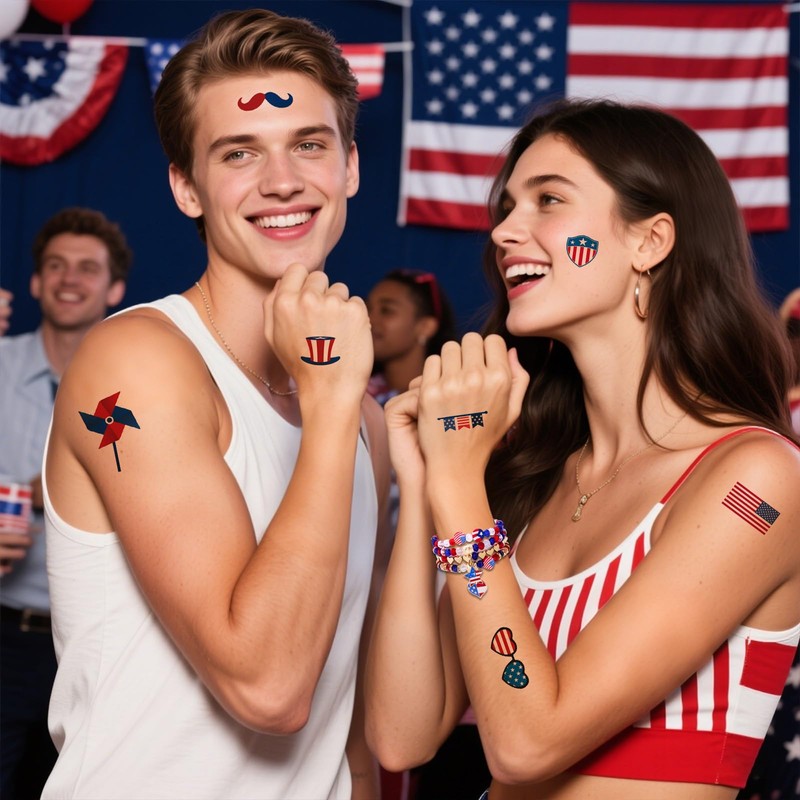 - Versatile Usage: Perfect forbackyard barbecues, or beach parties, these bracelets help you stand out with a patriotic look. They also enhance your style whether you're at the beach, exploring a city, or at a festival. The 4th of july temporary tattoos can decorate laptops, water bottles, or be used as body art for a more immersive celebration.