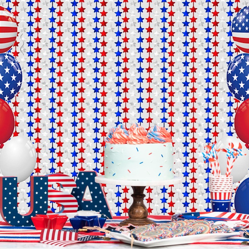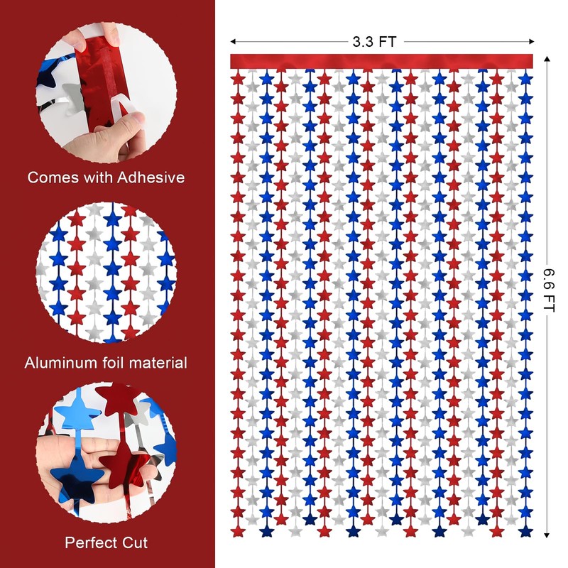 - Package Includes: 3 Packs of Star Foil Metallic Tassel Curtains, each ribbon size (L x W): 3.3 x 6.6 FT, perfect 4th of July decorations.