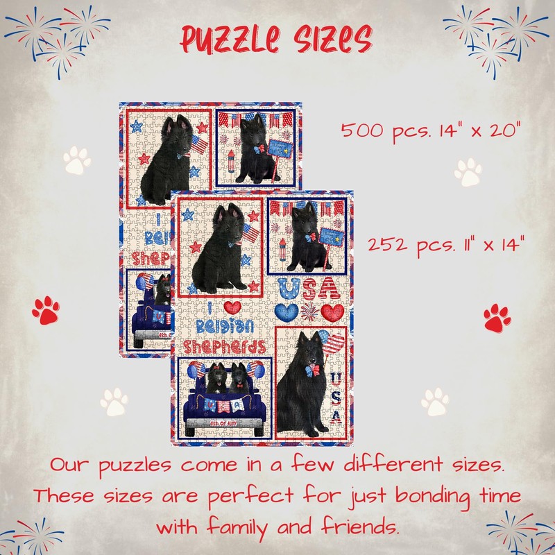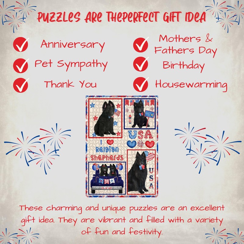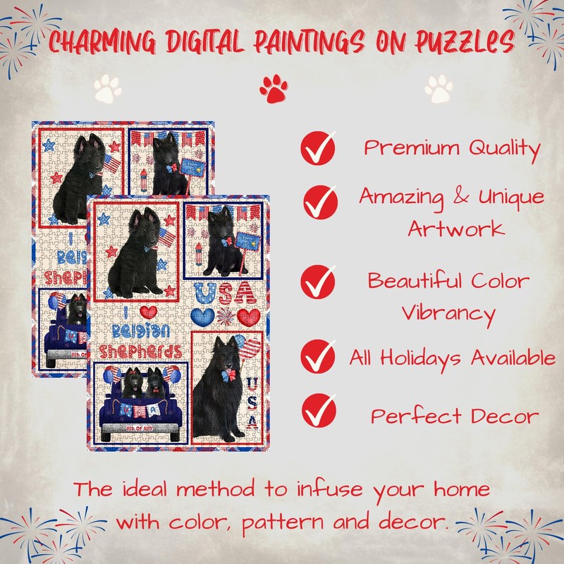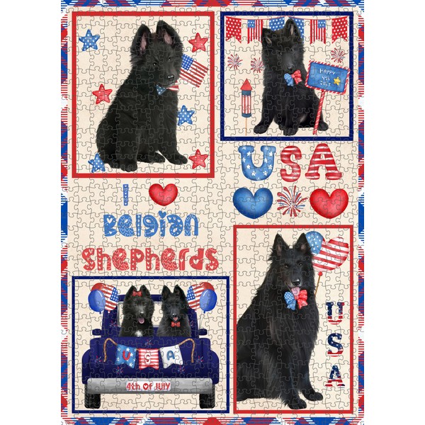 4th of July Independence Day I Love USA Belgian Shepherd Dog Jigsaw Puzzle for Adults - Animal Printed Interlocking Puzzle Game Artwork - Gift for Dog Lover's - 200 Pcs 14"x10"