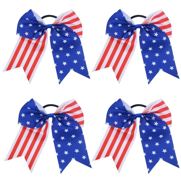 - Package Includes:4PCS 4th of July Cheer Bows. Bright and vibrant, which is awesome as you can match any outfit. Perfect for outfitting the whole team and make it an option for any team to add sparkle to any performance.