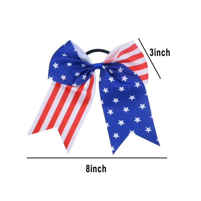 - Size: 8 inch Cheerleading large hair bows are made by 3 inches width. They can be easily attached to a ponytail with a wrapped elastic hair tie, which can match with girls' 4th of july clothes.