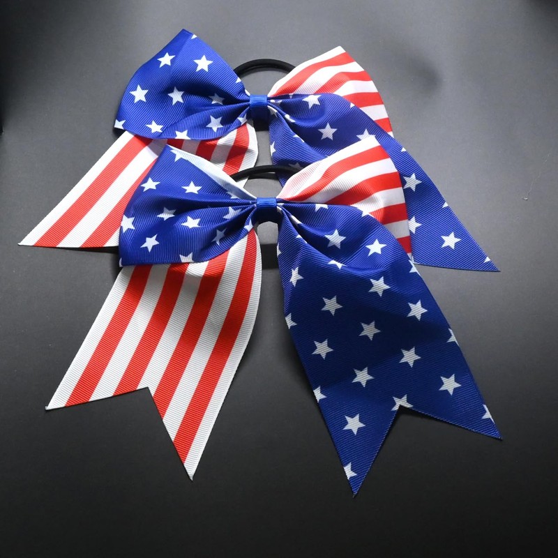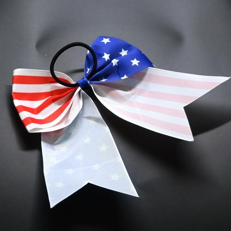 - Sports and Fashion:Our American Flag cheer bows are excellent and the color is bright and make it an option for any team to add sparkle to any performance. The cheering bow is designed with a elastic band that fits easily.