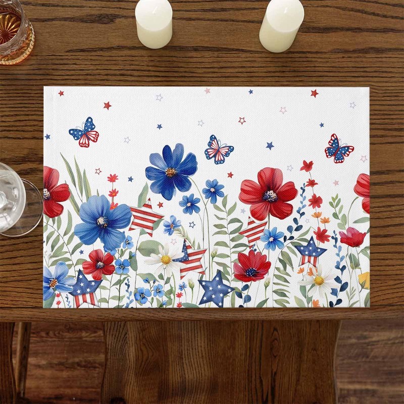 - Perfect Independence Day table decoration: Exquisite printed table mats, perfect embellishment of your dining table, beautiful and stylish placemats add more festive atmosphere to your dining table. Unique American flag and flower patterns are high-definition printed on the table flag, bringing you more festive atmosphere.