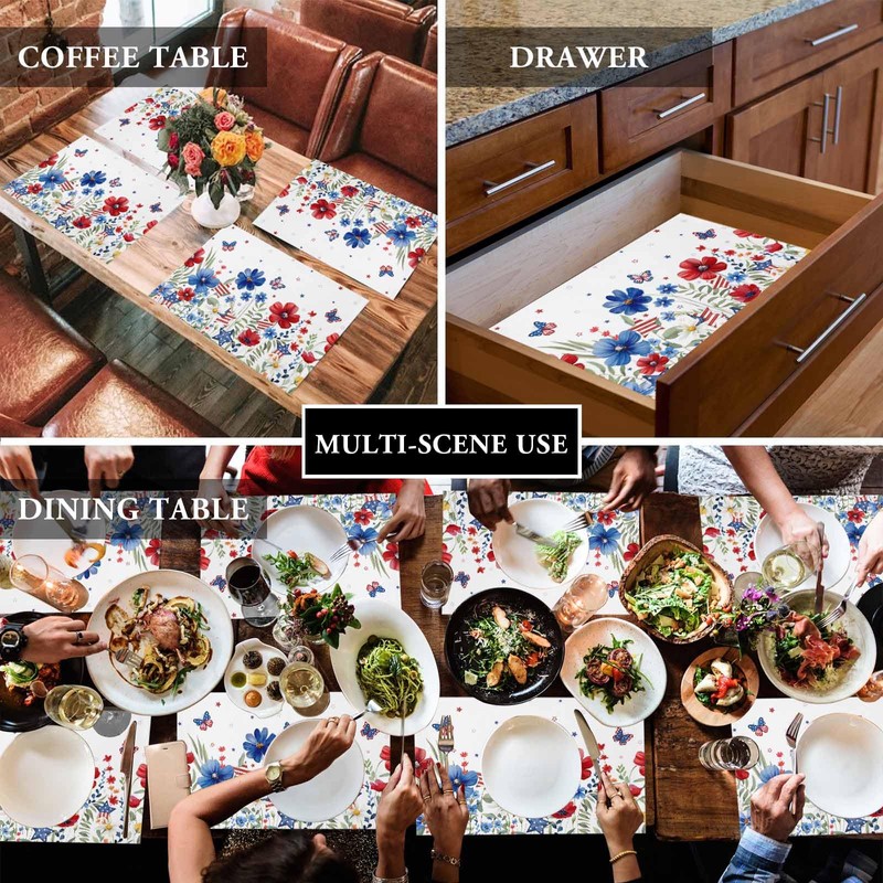 - Practical & Fashionable: The Memorial Day placemats are ideal for home use, kitchen, dining table, bedroom decoration. These table placemats are also great gifts. The placemats can be used indoors and outdoors to meet your different needs, perfect for any party, family gathering, feel the festive atmosphere.