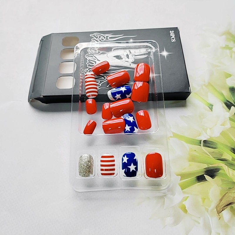 • 【Unique Design】 According to the most popular elements of the Independence Day moment, these short square press on nails are designed with red stripe, star and sparkly glitter sequins.