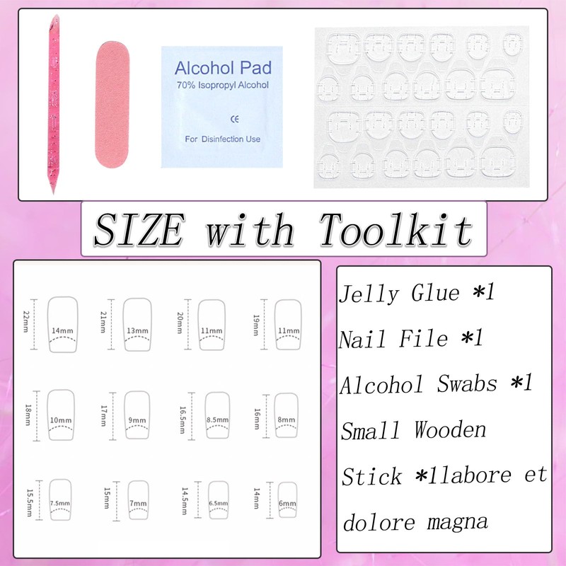 6.(1) Use jelly glue and glue at the same time to stick to the nail. nails can be worn for 1 to 2 weeks (Note: Nails that have been glued cannot be reused, and the product packaging does not contain liquid nail glue)