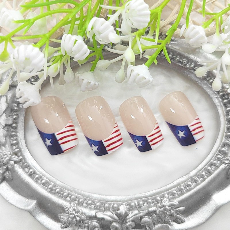 - Easy to use: 4th of july Glue on nails are easy to trim. It only takes 5 minutes to get nails you love. and they can also be easily filed and trimmed to make fake nails better fit our natural nails. a few simple steps can give you salon like results at home.