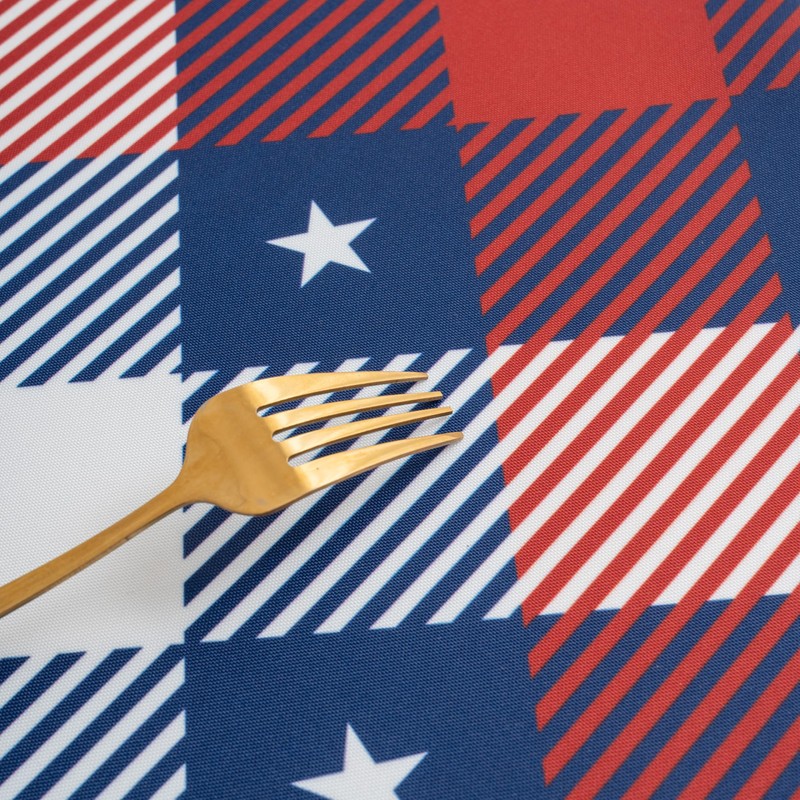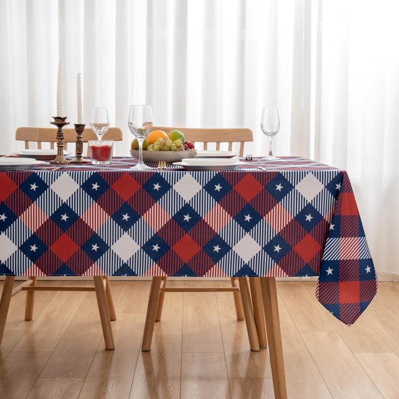 Enhance your holiday dining experience this season with the 4th of July Buffalo Plaid Tablecloth, combining delightful design with practical functionality to create memorable moments around the table.