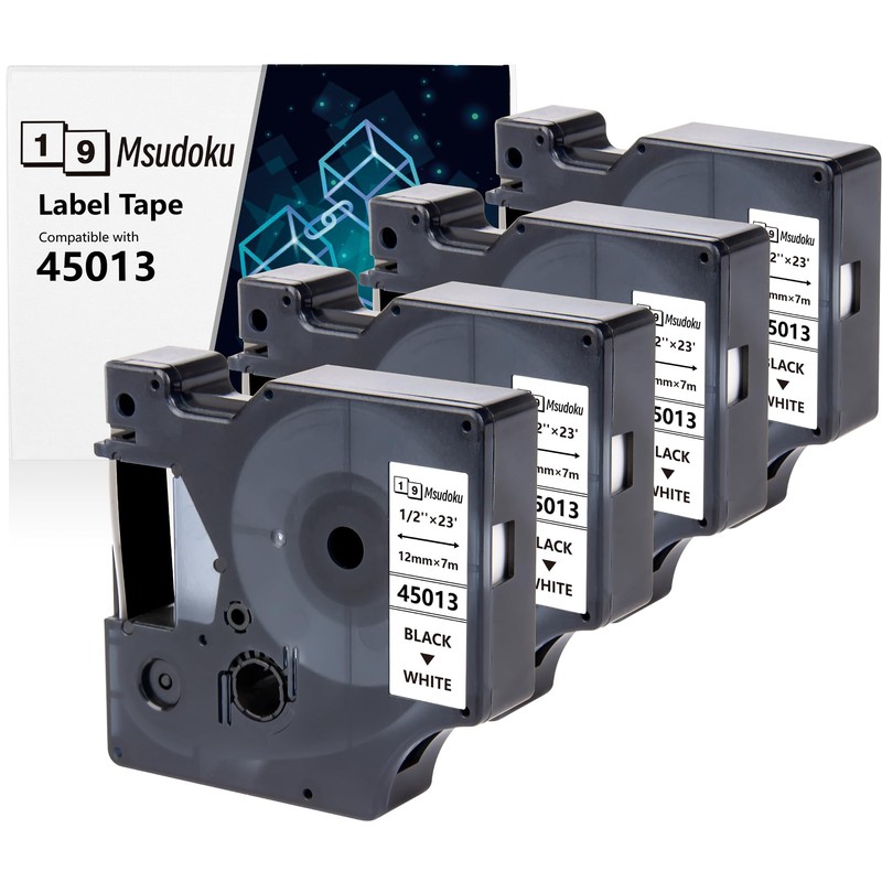 4x Msudoku Compatible with Dymo D1 45013 S0720530 Black on White Label Tape A45013 45013s 12 mm x 7 m for LabelManager 160 280 210D 360D 420P PnP 450D