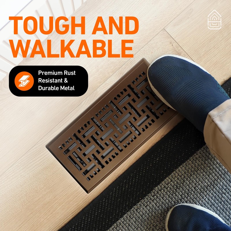 - NO TOOLS NEEDED - This vent register is easy to install, no tools or experience required. Chip and scratch-resistant finish is made for a lifetime of functionality and charming visual appeal. Heavy duty steel construction is safe to walk on or rest items atop.