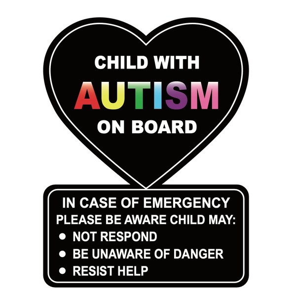 4x5.25 inch 5 PCS Black Child with Autism on Board Sticker Removable Adhesive Stickers