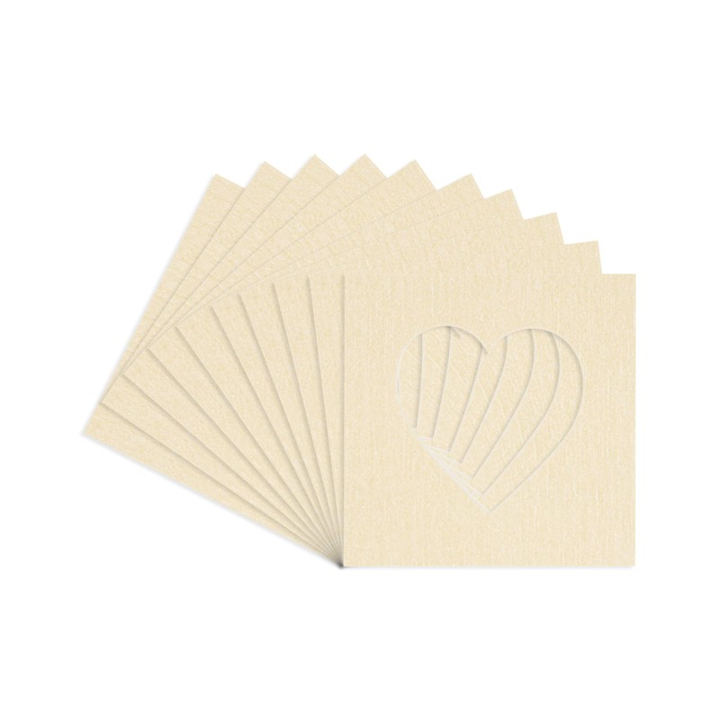 4x5 Mat For 7x7 Frame - Precut Fresh Linen Canvas Heart Shaped Photo Mat Board Opening - Acid Free Matte to Protect Your Pictures - Bevel Cut for Family Photos, Pack of 25 Matboards