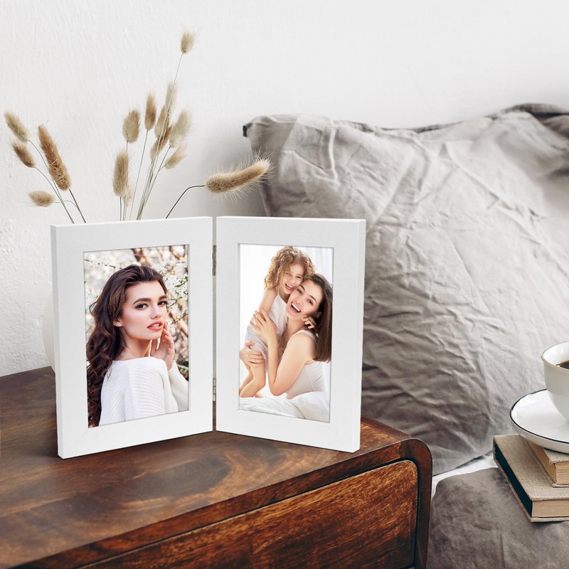 - Hinged Picture Frame: 4x6 hinged double frames can display two 4x6 inch pictures side by side on your desk vertically. It's the perfect way to showcase photos that preserve your moments.