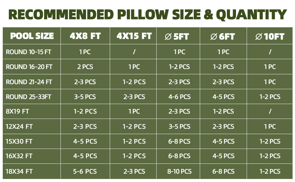 • PROTECTION FOR YOUR ABOVE GROUND POOL: Pool pillows for above ground pools help offset ice expansion pressure. When freezing occurs, expanding ice can stress pool walls. This inflatable pillow absorbs force, helping reduce potential wall damage. It also limits debris buildup under winter covers, contributing to a cleaner opening