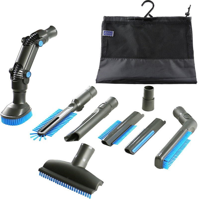 - Kit contains 8 different bits - 1 x Deep cleaning brush, 1 x 2 in 1 Pivoting dusting brush, 1x Crevice tool, 1 x Radiator brush, 1 x 2 in 1 upholstery brush, 1 x 3 in 1 sweeping crevice tool, 1 x 32mm to 35mm tool adapter, 1 x Multi Crevice tool - Includes Adaptor that allows the tools to fit onto a 32mm or 35mm pipe