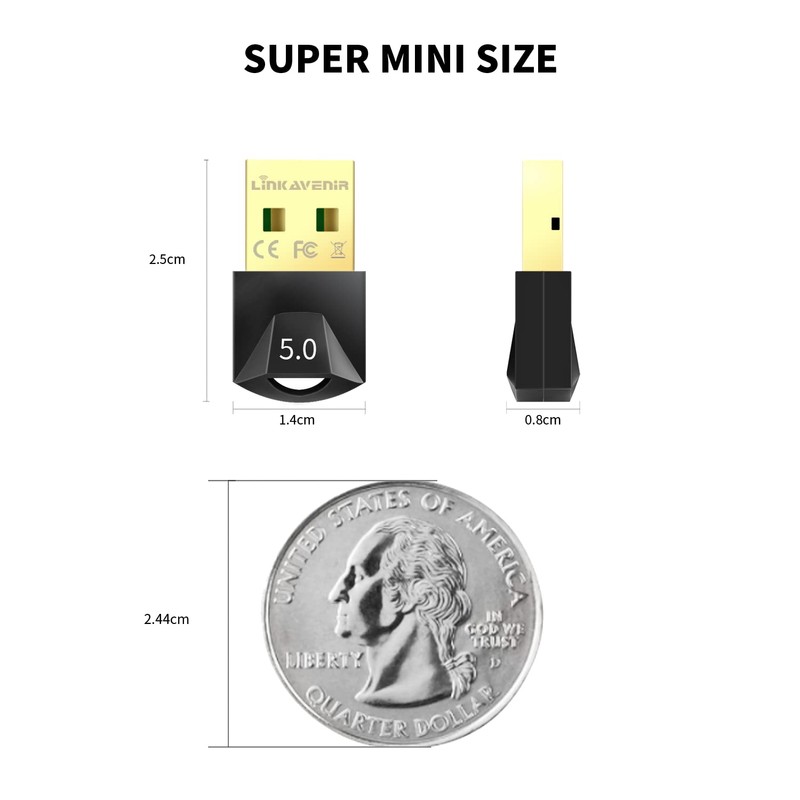 • 🐳【Mini Size Bluetooth USB Dongle】 Bluetooth USB wireless adapter is designed for convenient portability. The small USB bluetooth dongle allows you to leave it on a laptop or PC without removing it. The bluetooth transmitter USB connects seamlessly to a PC/laptop without blocking or interfering with surrounding USB ports. With this mini bluetooth headset adapter you can save space for your headset, keyboards and more