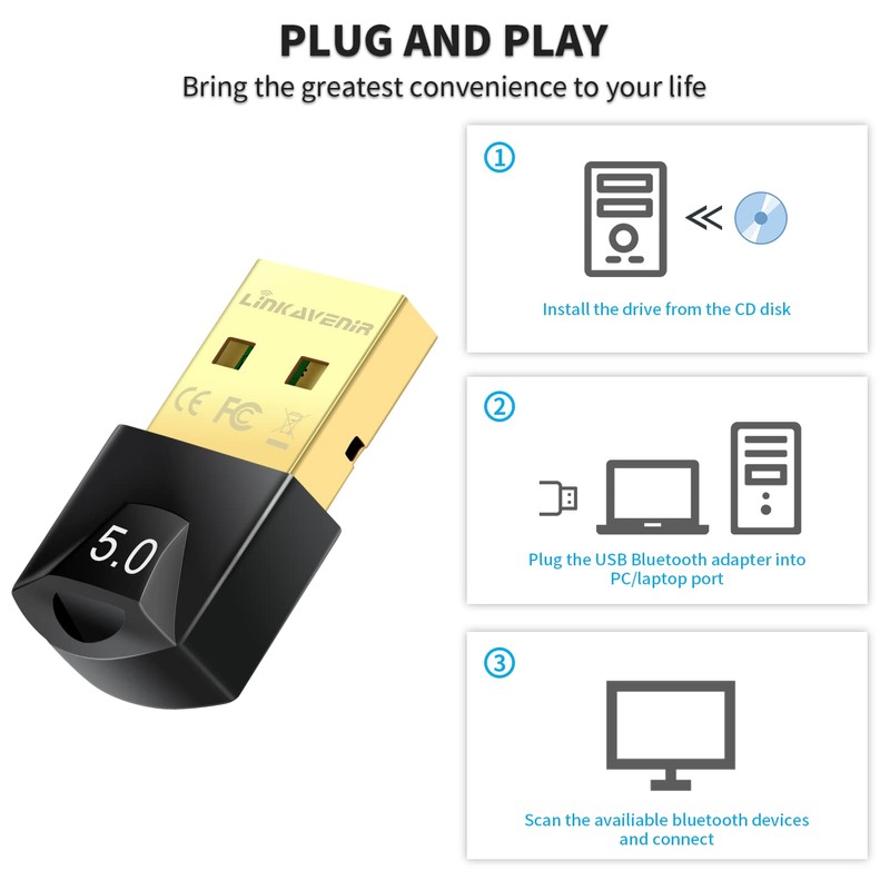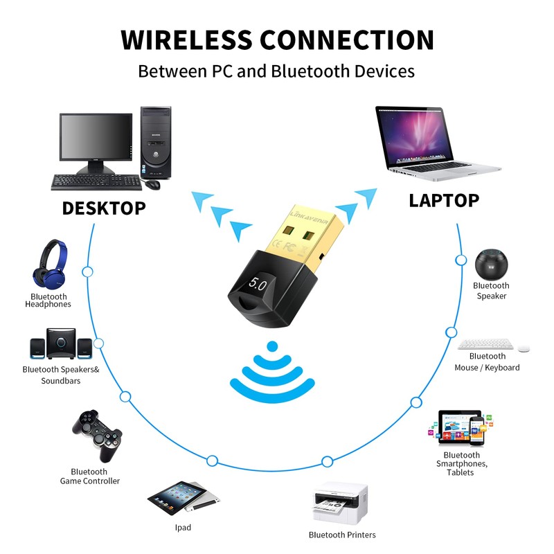 5.0 Bluetooth Adapter for PC, 3Mbps Bluetooth Dongle for PC windows 11/10/8.1/8/7, LinKAVEniR Dual Mode Bluetooth Network Adapters for Speakers/Headphones/Keyboards/Headsets/Printers/etc