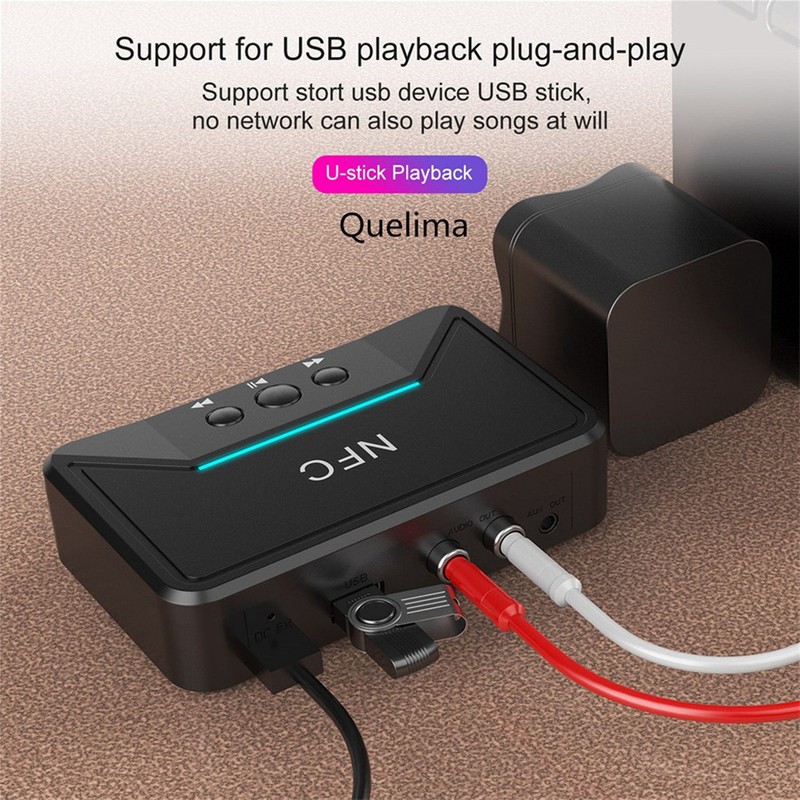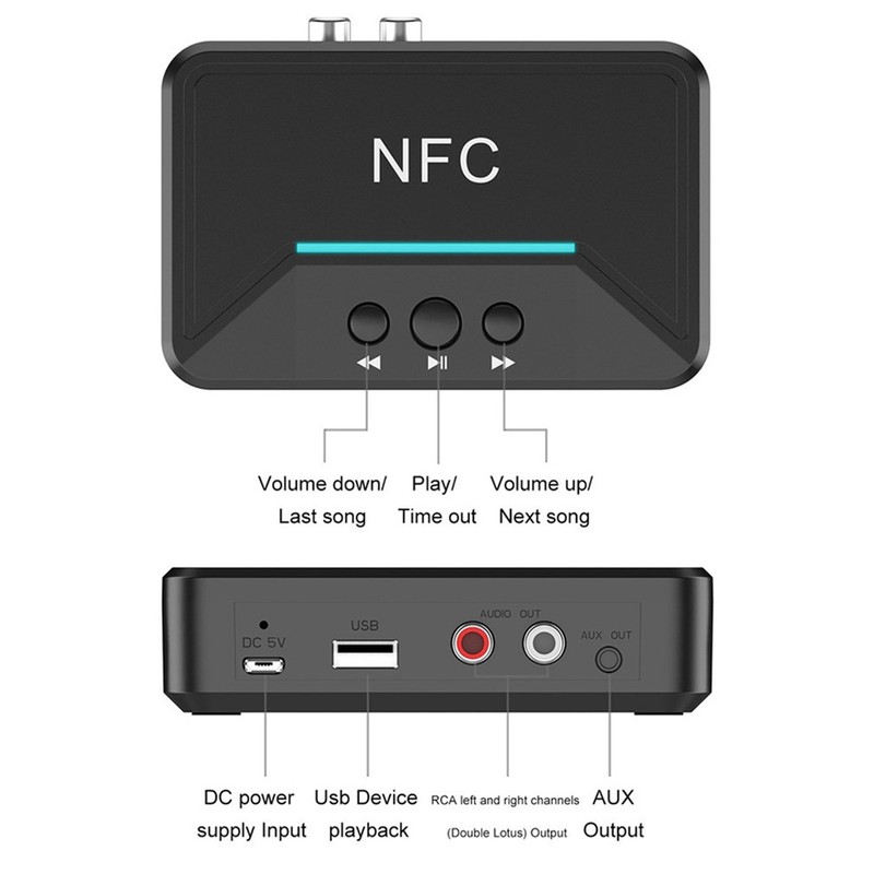 1、[NFC Near Field Pairing] Support NFC near field pairing, pairing NFC to automatically turn on or off Bluetooth wireless connection, support U disk. 2、[Widely Compatible] Bluetooth adapter receiver with 3.5MM AV output interface, which can be widely compatible to meet your various need. 3、[Power Isolation Technology] Bluetooth receiver use the latest power isolation technology to ensure perfect sound quality, let you feel the high quality music. 4、[Durable Material] Made of high quality ABS material, which is safe, durable, wear resistant, and can be used for a long time. 5、[Stable Performance] Bluetooth receiver is exquisite in workmanship, stable in performance, so you can be used with confidence.