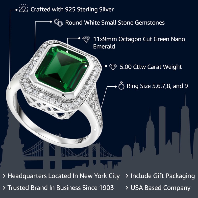 • Quality Craftsmanship: Crafted with precision and attention to detail, this ring showcases superior craftsmanship and quality. The 925 sterling silver band provides a sturdy foundation for the nano emerald, ensuring its security and durability. The polished finish adds a touch of refinement to the design, while the secure setting holds the gemstone firmly in place. With its durable construction, this ring is designed to withstand the rigors of daily wear, allowing you to enjoy its beauty for