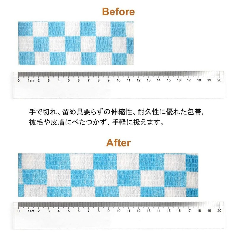 • ❤使い方は簡単:手で切れ、留め具要らずの伸縮性、耐久性に優れた包帯,被毛や皮膚にべたつかず、手軽に扱えます。