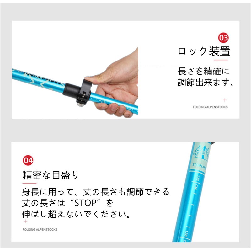 - 【収納性】-- 5段伸縮&折りたたみ式トレッキングポールは、収納時32cm、コンパクトで持ち運びやすい。