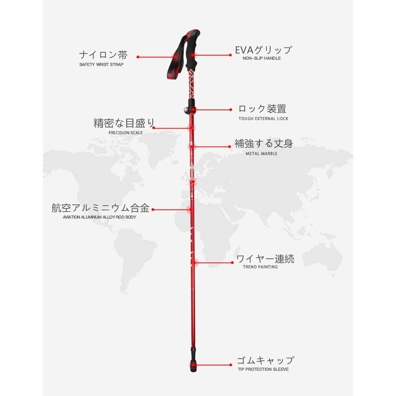 - 【材質】航空アルミニウム。軽量化と剛性のバランス実現にこだわった登山 ストック。