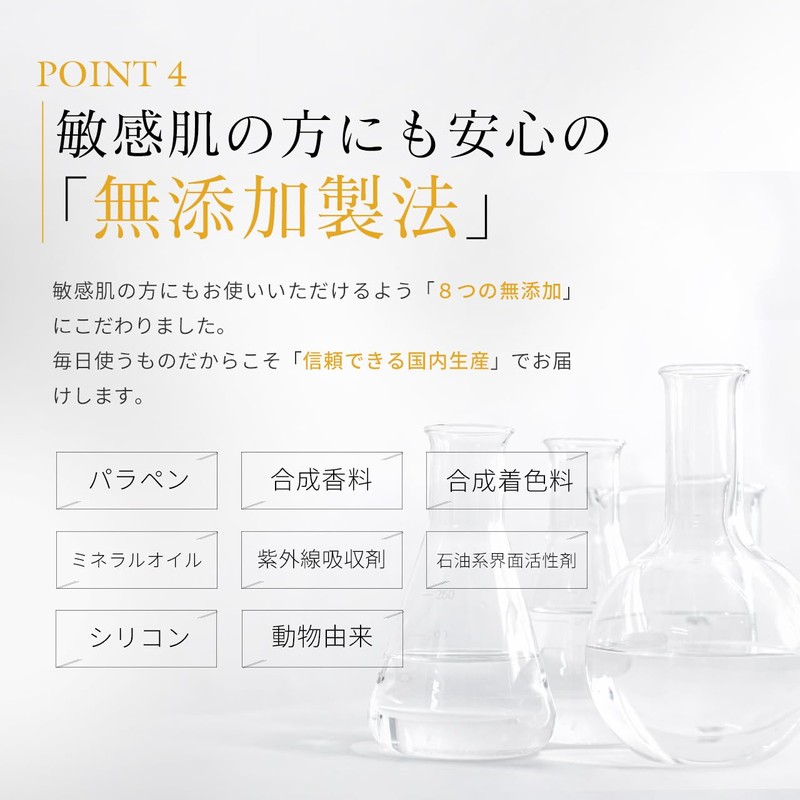 - ✅【こだわりの無添加製法】敏感肌の方にもお使いいただけるよう『8つの無添加』にこだわりました。〈パラベン不使用・合成香料不使用・合成着色料不使用・シリコン不使用・ミネラルオイル不使用・紫外線吸収剤不使用・石油系界面活性剤不使用・動物由来不使用〉