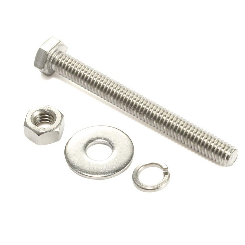 5/16-18 x 3-1/4" Hex Head Bolts with Hex Nuts and Thick Flat & Lock Washers, Fully Threaded, Stainless Steel 18-8, Plain Finish, 8 Sets