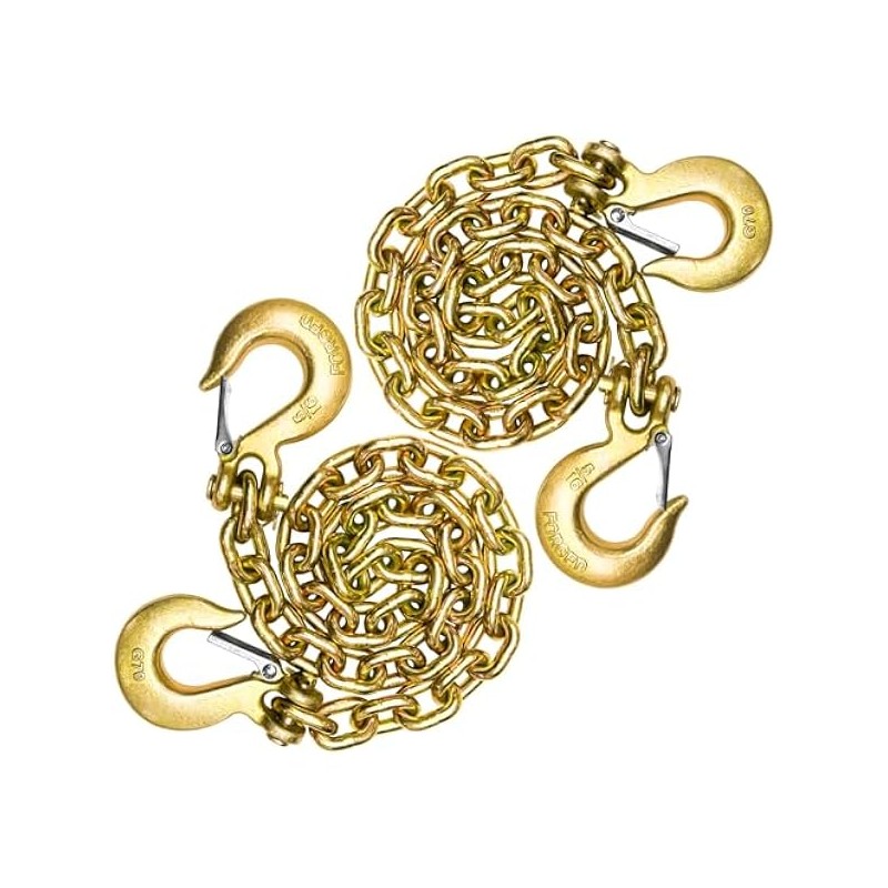 5/16" Trailer Safety Chains with Hooks G80 Trailer Chains with 4 X G70 Clevis Safety Hooks 35" 17000 lbs Break Strength 4900 lbs Safety Working Load Heavy Duty Tow Chains Binding Chains(2 Pack Yellow)