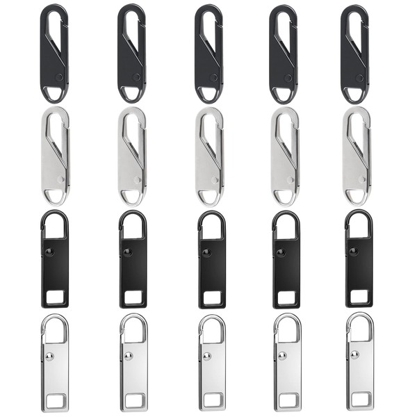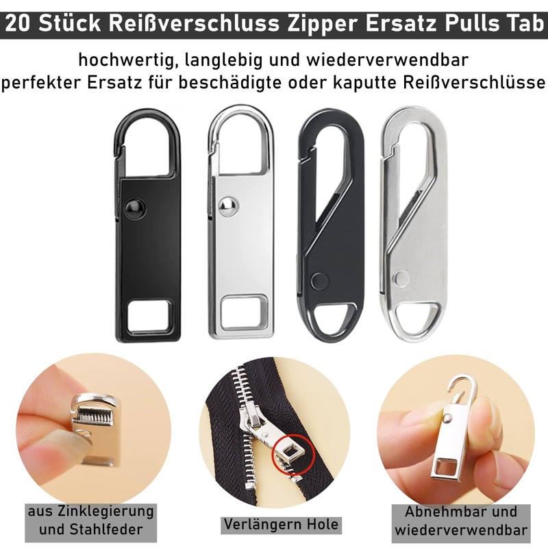 5# 20 Piece Zip Repair Kit Pull Tabs Replacement Zipper Pendant for Suitcases Coats Boots Jackets Backpacks Bag